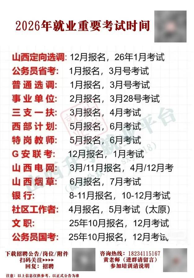 2026年山西省考公告及职位表预计2026年1月份发布。根据2025年1月6日出公告,3月15日笔试来看,出公告还有不到一个月的时间,还有3个月笔试,山西考生早备考。