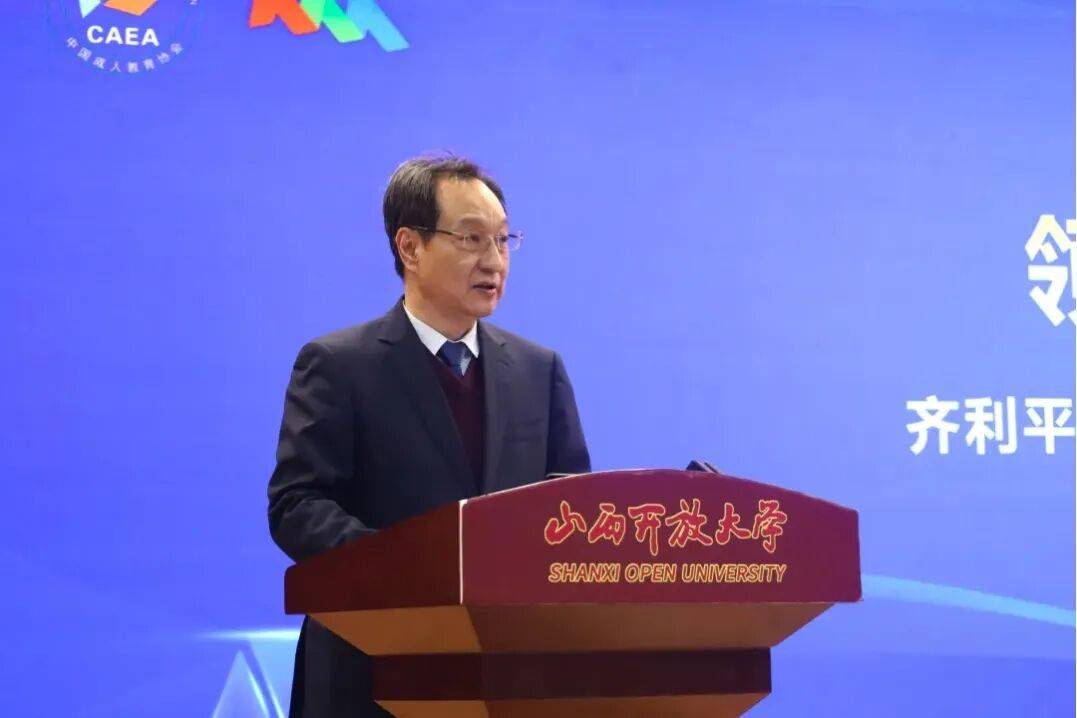 齐利平代表山西开放大学致欢迎辞。他介绍了学校在服务地方终身学习体系建设、助推学习型社会发展中的积极作为,表示本次会议落地山西,既是对本省全民终身学习工作的肯定,也是一种激励。山西开放大学将持续发挥体系优势,与全国同行携手推动终身教育高质量发展。
