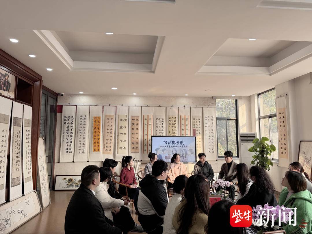现场笔墨飘香,古朴的书画作品与满室书籍相映成趣,在墨香与书香交融的雅致氛围里,与会的30名青年教师们围绕《尊师重教在扬中》开展深度共读分享,在字里行间探寻扬中教育的发展脉络;“青橄”微访谈环节中,大家结合教育家精神,畅谈教育新思考、新感悟;好书共读推荐环节更是交流热烈,老师们纷纷分享教育类好书,碰撞出思想的火花,共同触摸扬中教育的历史温度,传承尊师重教的精神内核。