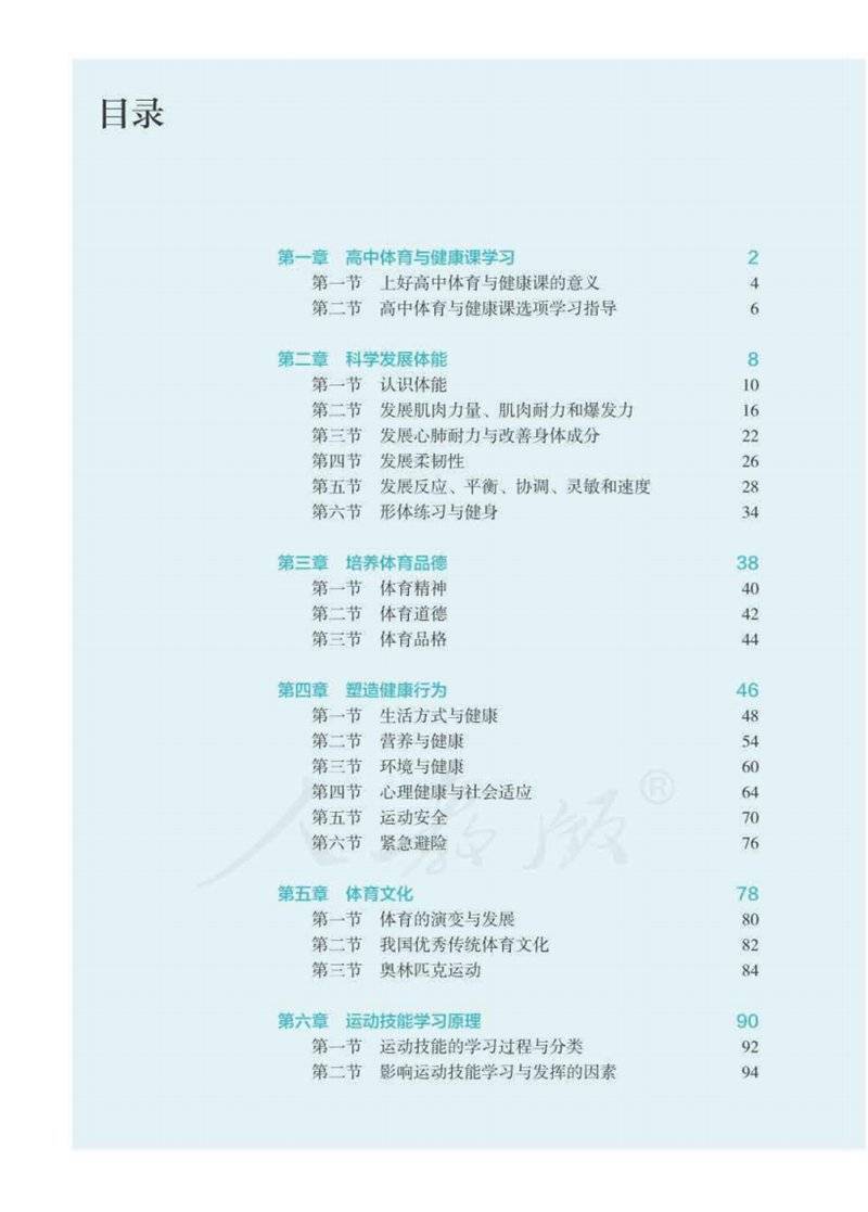 为了帮助高中生自主预习与有效复习,我们整理了2026新教材人教版高中体育与健康电子课本,教材突出跨学科思维与实际应用能力的培养,下面以图片的形式呈现给大家,希望可以帮助到大家。