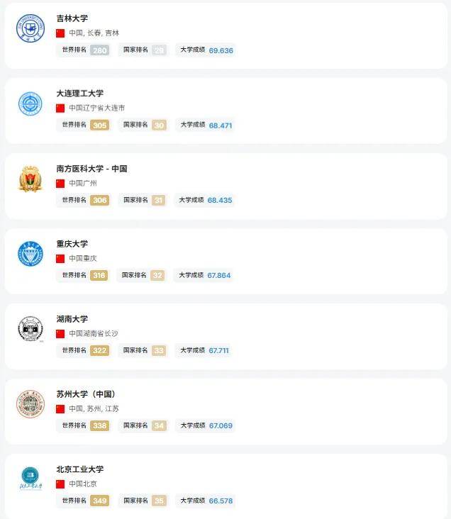 中南大学则显得更冤一些,RUR给中南的位次是第36,放眼世界是354名,软科排它在27,校友会排它在15,这个36的名次看起来确实有被低估的成分,中南的冶金与矿业是全国的顶尖水平,材料,机械,医学也都相当不错,2025年1月最新的esi数据还添了一个前万分之一学科,学术产出的能力明明白白摆着,只能说RUR那套评价指标,和中南的学科特点不太匹配。