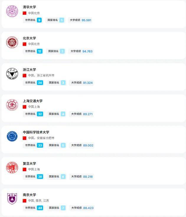 俄罗斯眼中的中国高校实力:北大、清华遥遥领先,浙大第三,天大杀回前十
