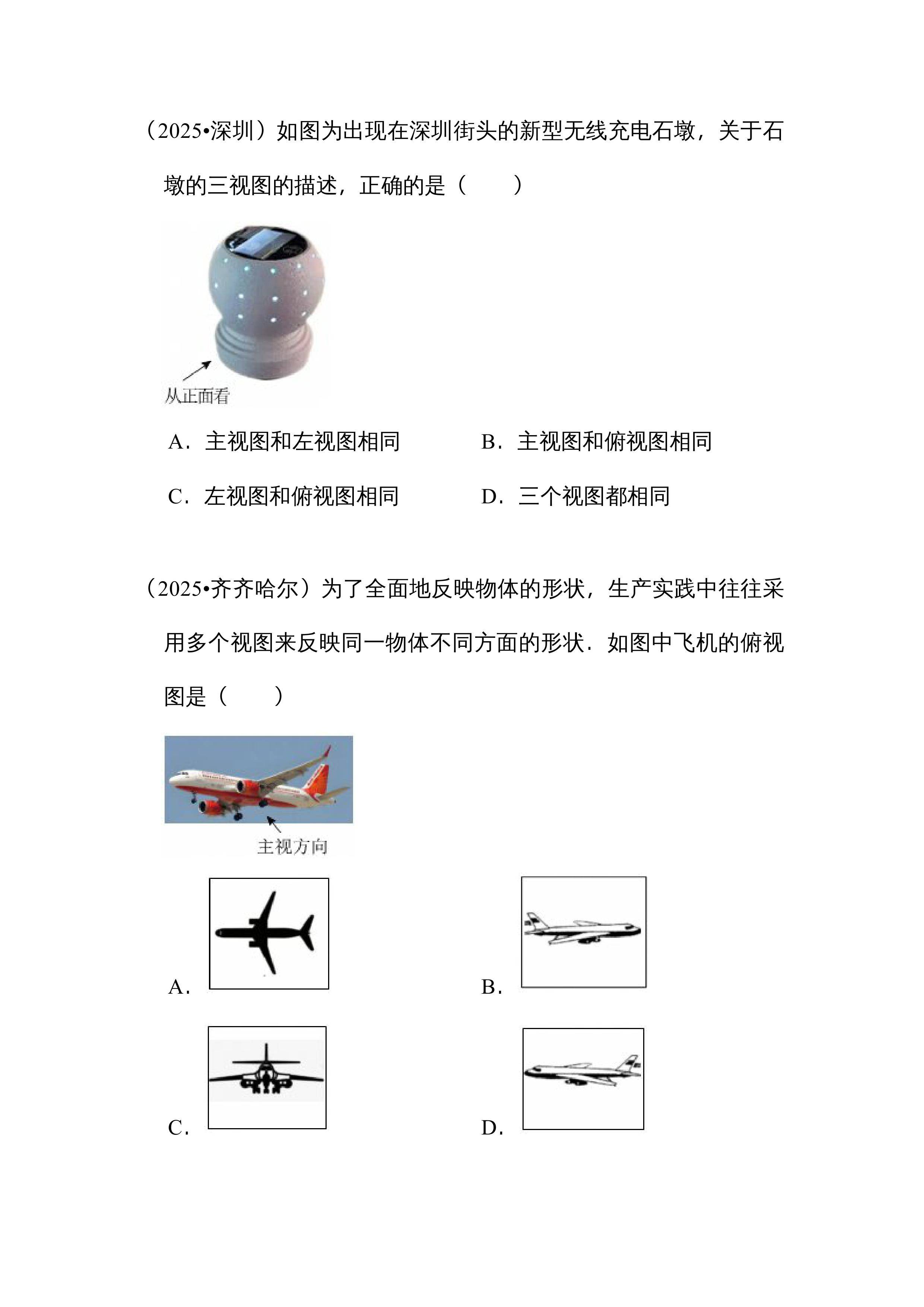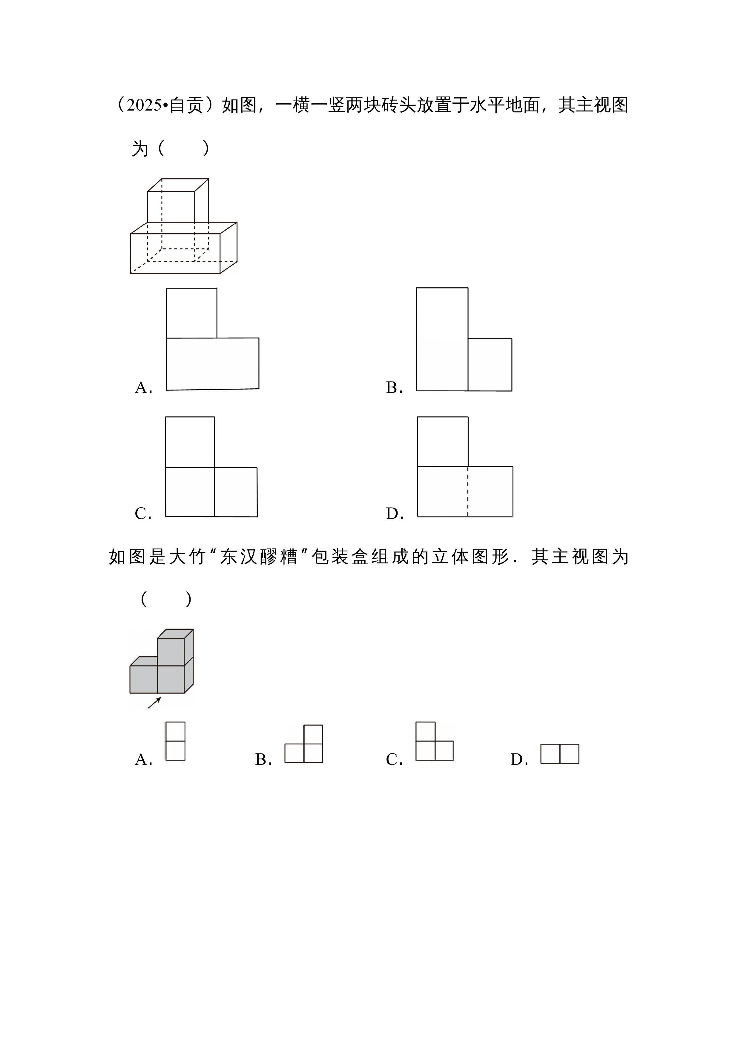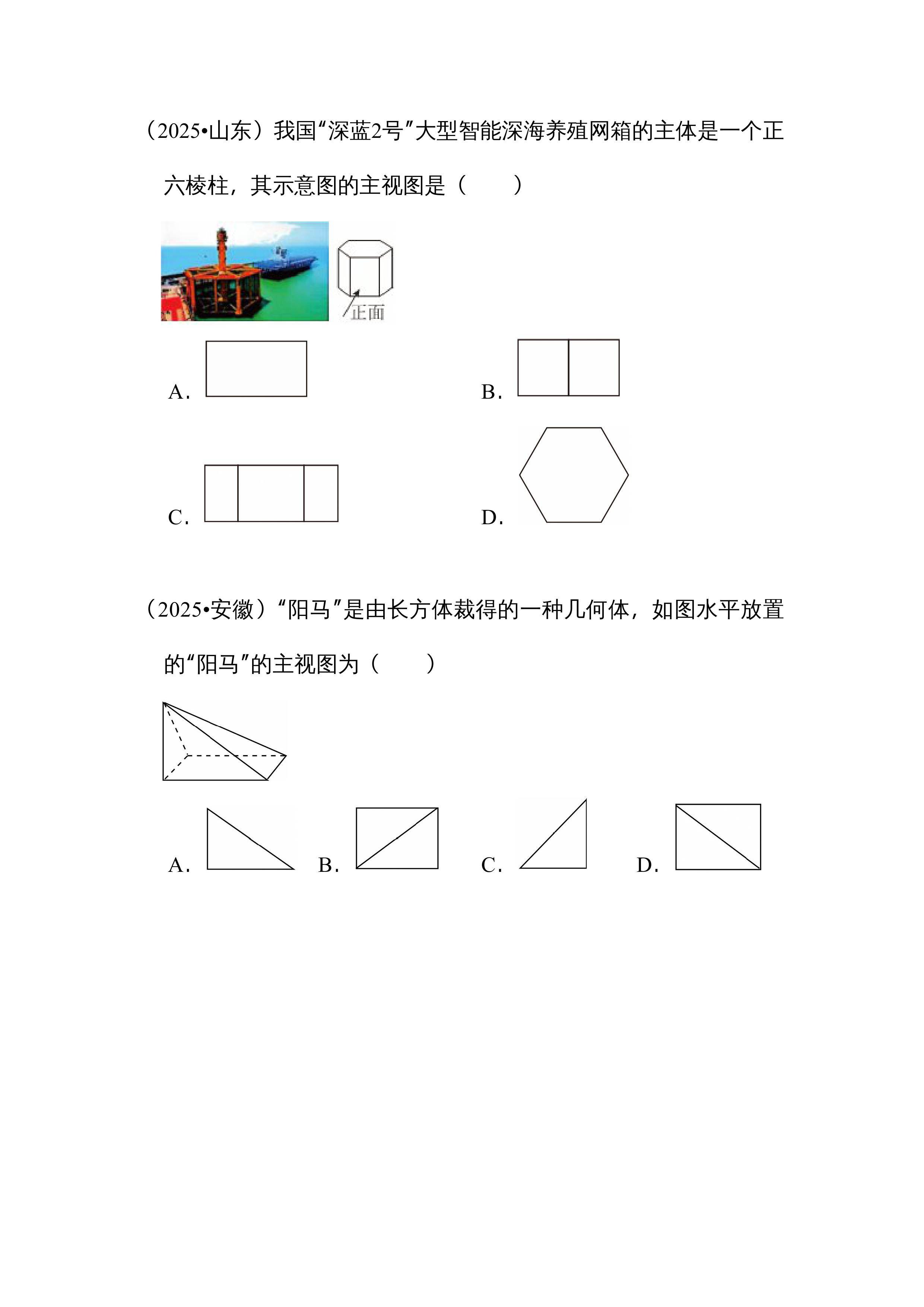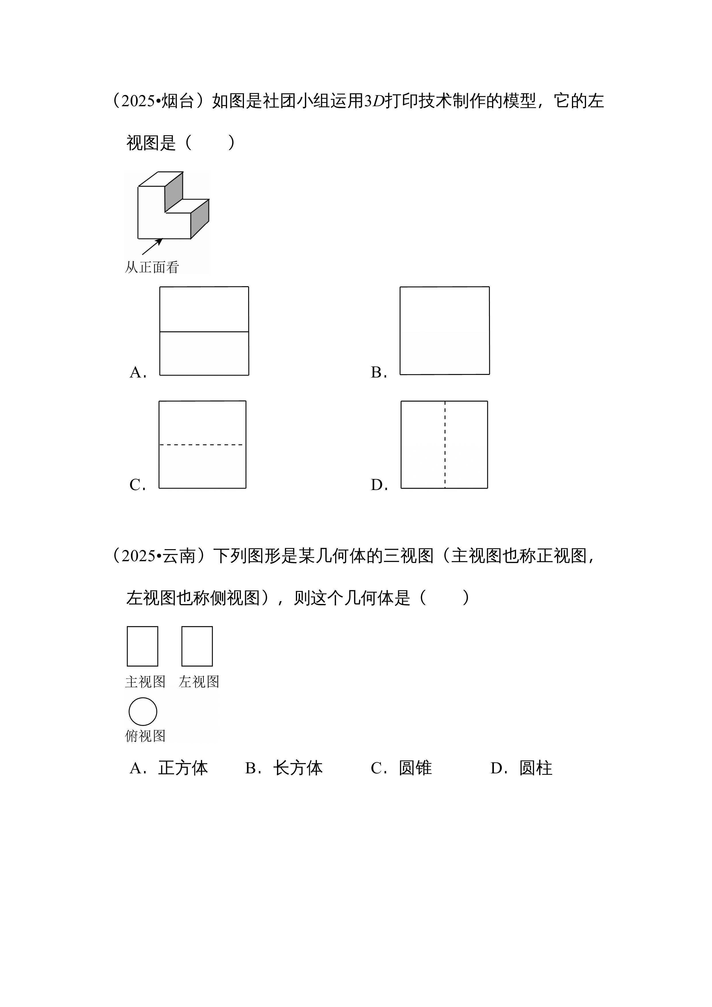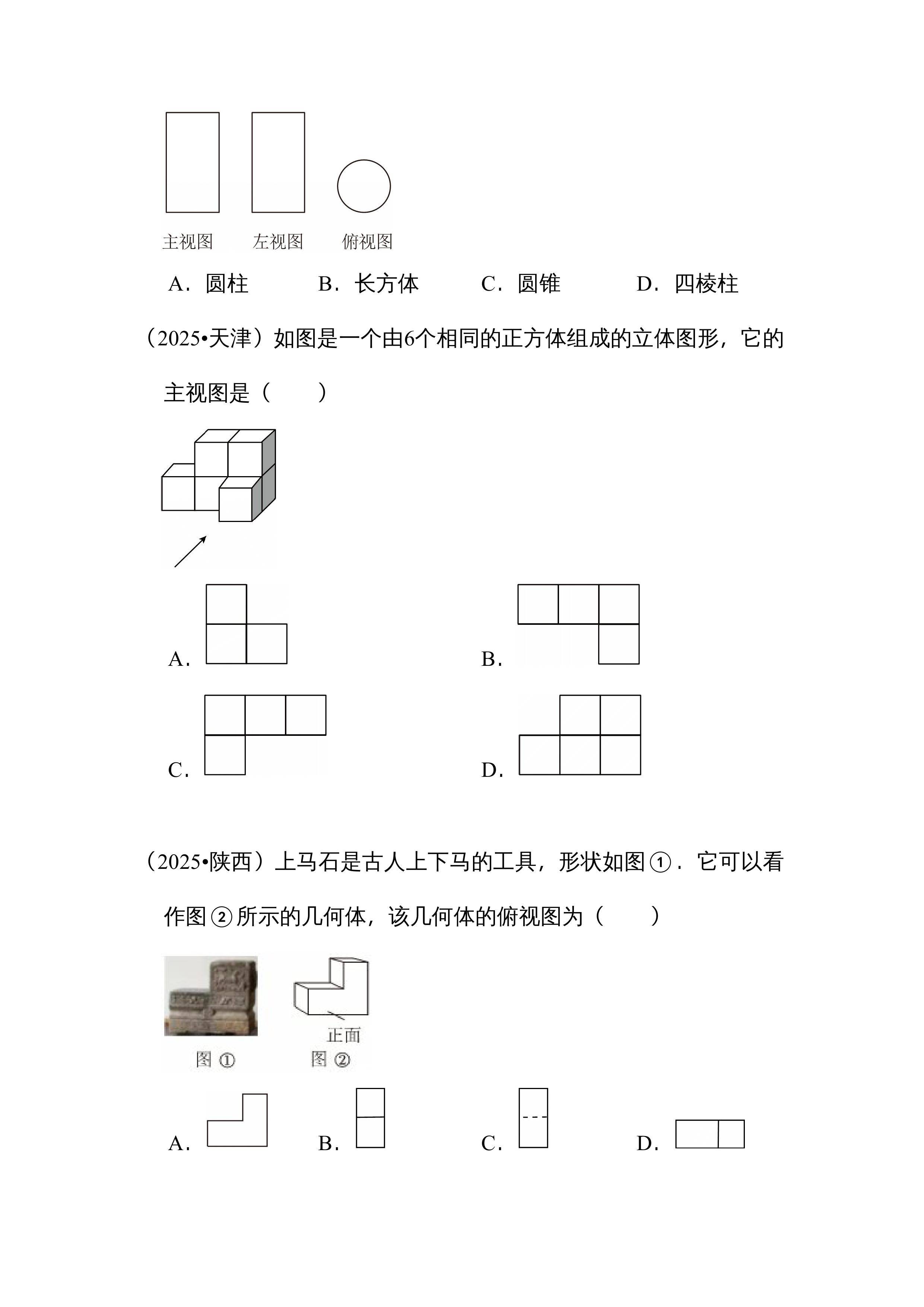 新七年级上册期末三视图期末冲刺练习中考数学真题2026新教材