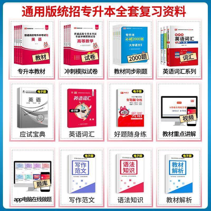 地域适用性:不同省份的专升本考试有所差异,选择针对本省考情的教材更为有效。例如广东考生应选择专插本专用教材。
