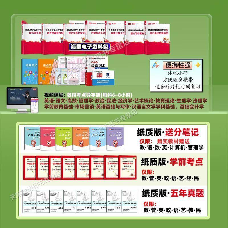 广东地区的专升本考试(专插本)有其独特性,需要针对性的备考资料。这套专为广东考生设计的教材和真题集,充分考虑了地域考试特点,是备考路上的得力助手。