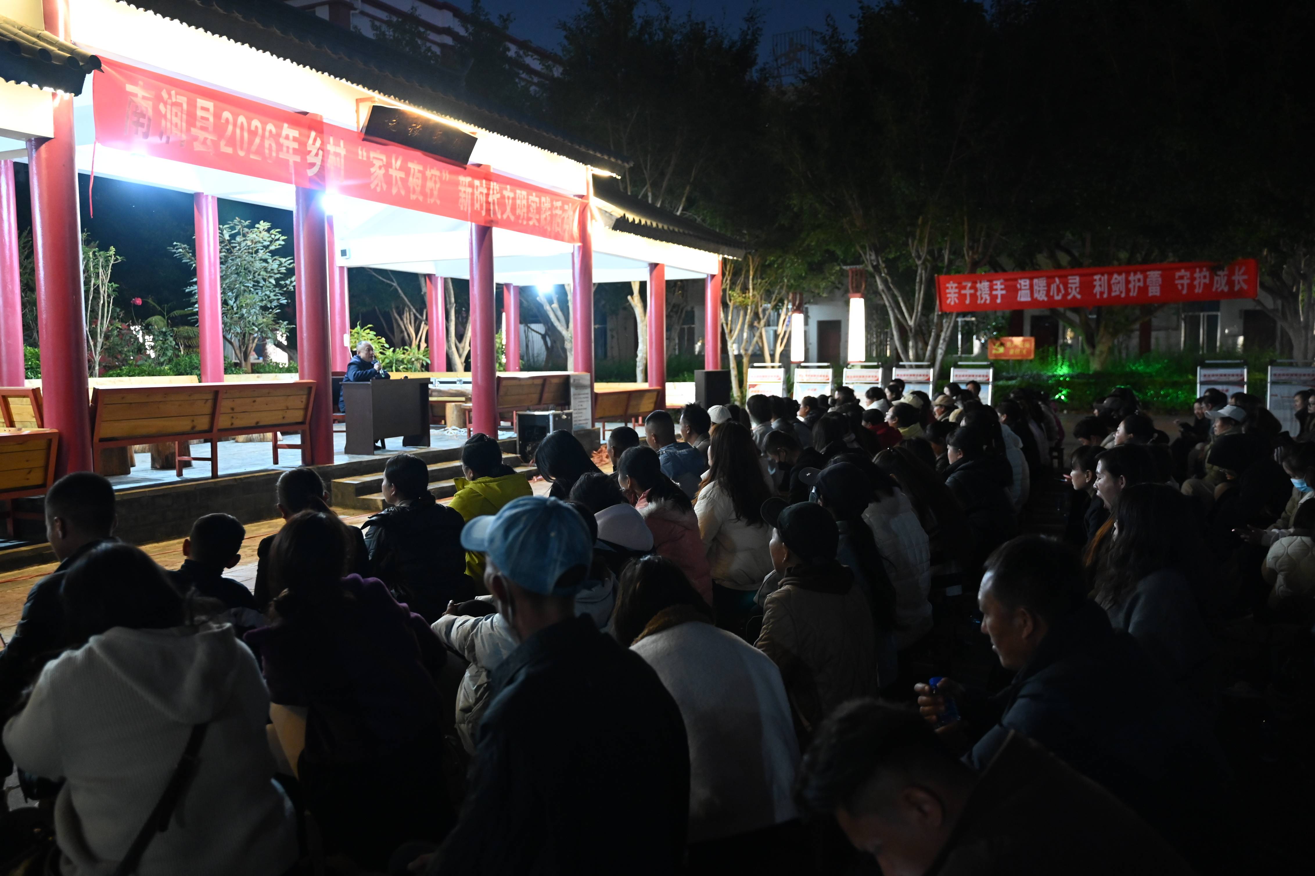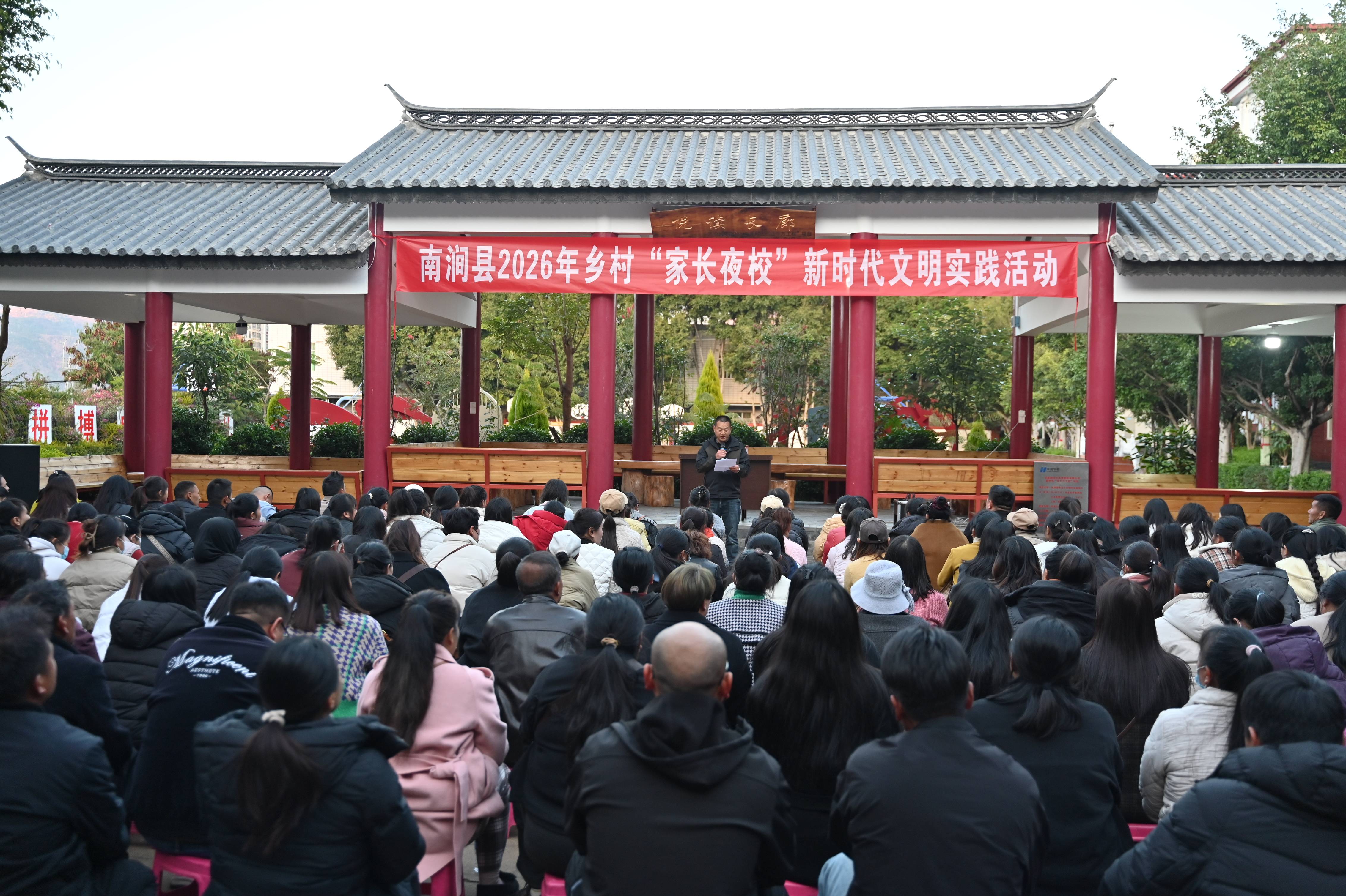 1月12日晚,南涧镇安定小学灯火通明,暖意融融。200余名学生家长齐聚校园,参加2026年南涧县乡村“家长夜校”新时代文明实践活动。本次活动由县委宣传部、县委政法委、县委文明办、县教体局联合举办,旨在直击家庭教育痛点,筑牢家校社协同育人防线。