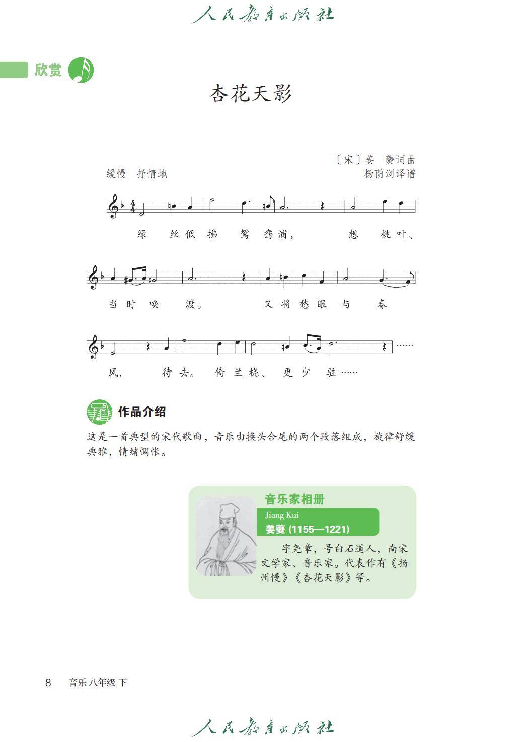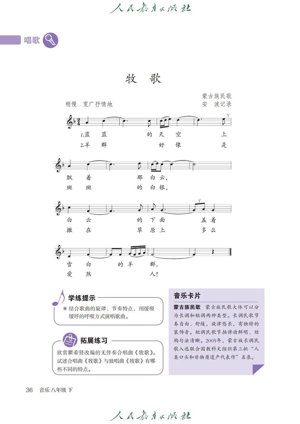 2026人教版八年级音乐下册电子课本(新教材)就为您介绍到这里,资源来源于网络,仅为学习交流之目的进行分享,其版权均归原出版社及作者所有。