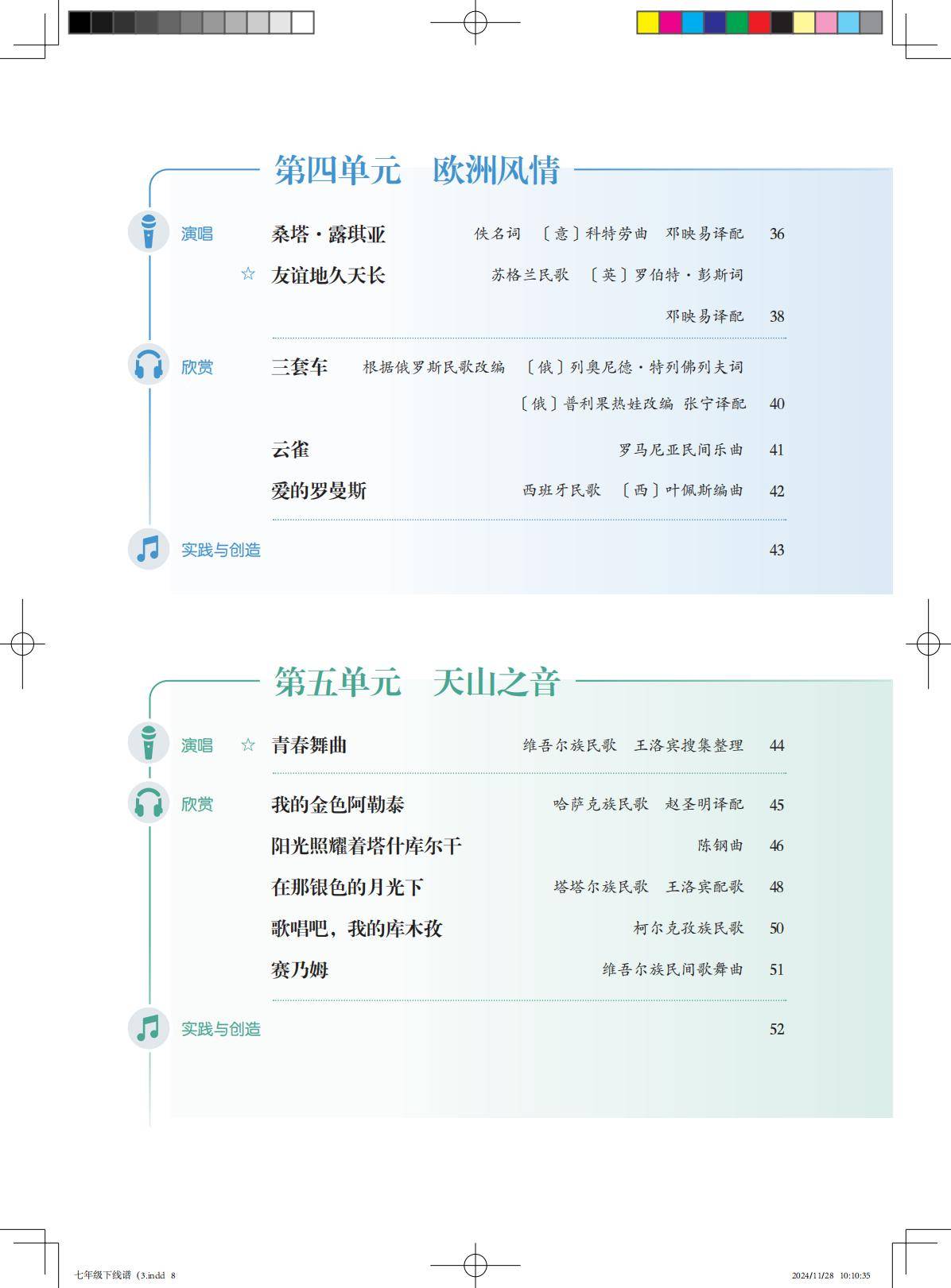 2026年初一学生将迎来音乐下册新版教材,新版教材特别强调知识之间的联系和实际生活中的应用!为方便广大初中生更好地了解新教材内容,我们特别整理了2026人音版七年级音乐下册电子课本,以图片的形式呈现给大家。