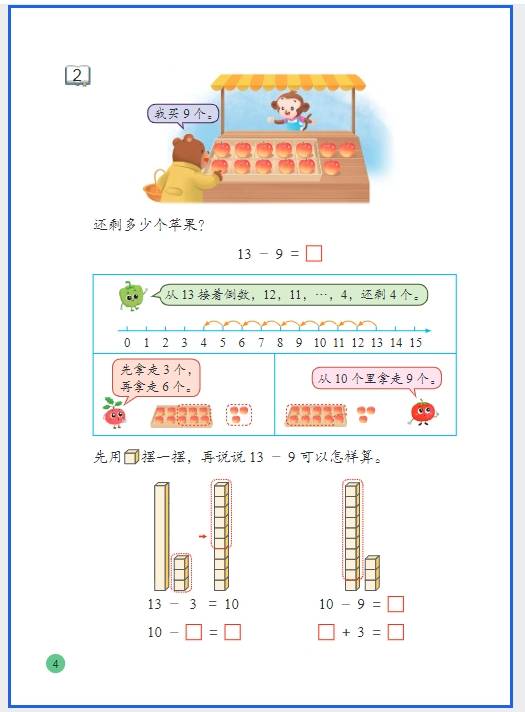 这是下册计算的核心难点,上册学了 20 以内进位加法,下册重点攻克退位减法,预习重点是理解算理(破十法),不是死记答案。