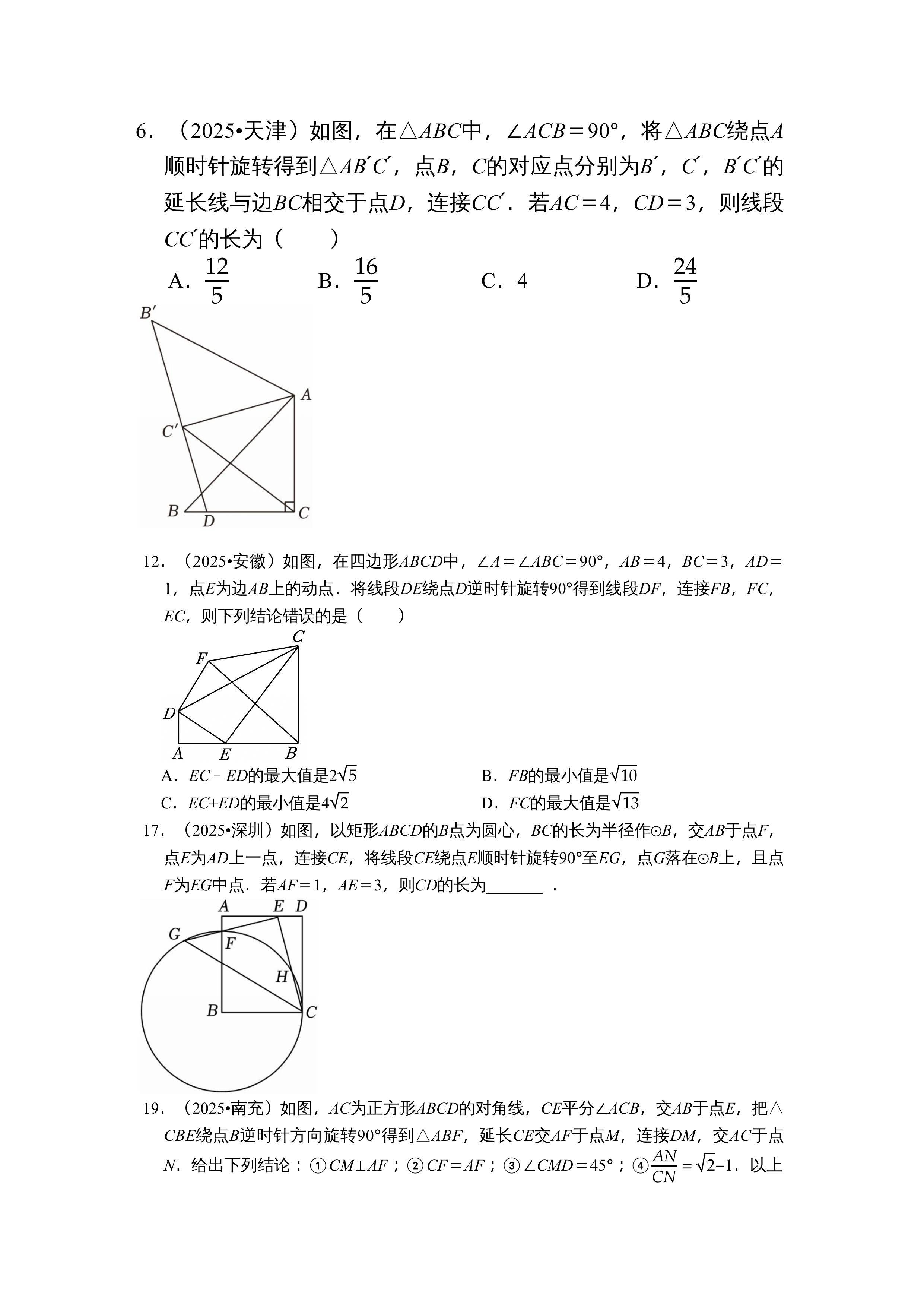新八年级上册期末旋转期末冲刺寒假练习中考数学真题2026新教材