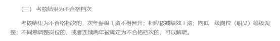 关于印发《 中国石油大学(华东)教职工年度考核实施办法》的通知则详细规定,年度考核被确定为不合格档次的, 向低一级岗位(职员)等级调整;被确定为不合格档次且不同意调整工作岗位,或者连续两年被确定为不合格档次的,可以按有关规定解除聘用(任)合同。