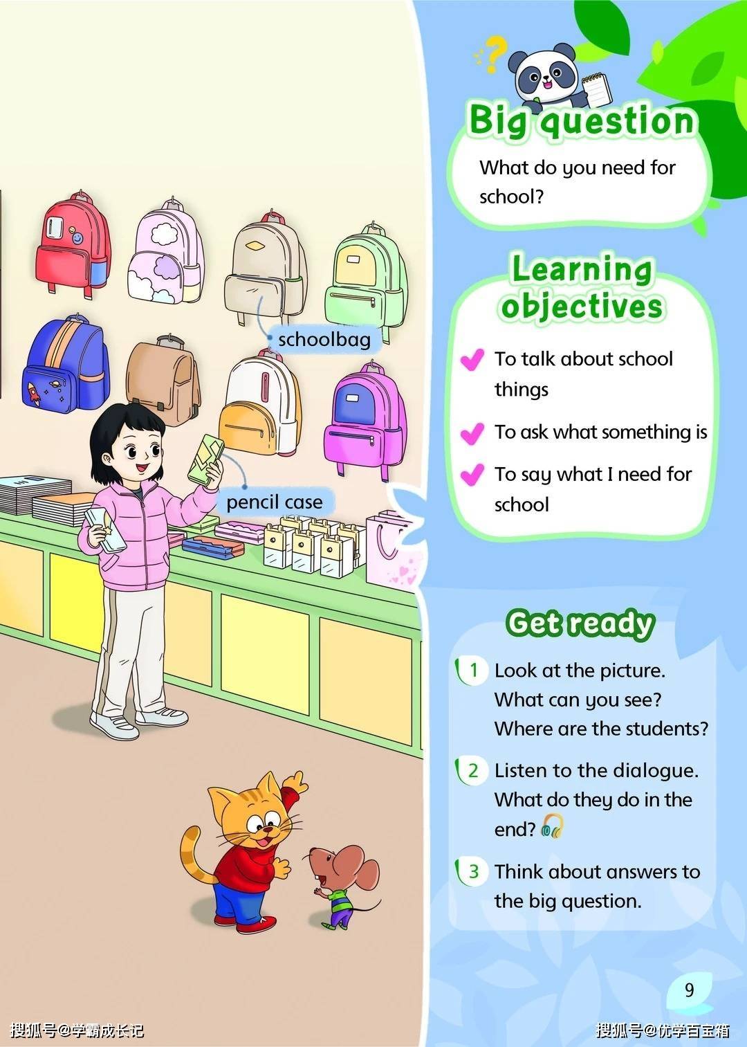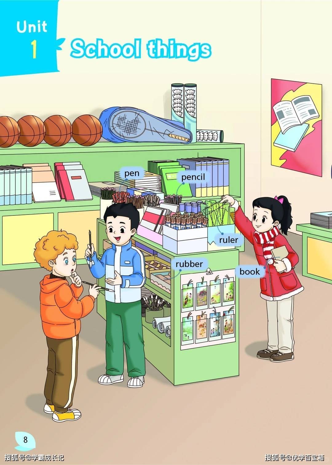每个单元都以 “Big question” 引发思考,用 “Lead-in” 导入主题,再通过 “Story time” 的趣味对话、“Cartoon time” 的幽默动画,以及 “Wrap-up time” 的实践活动,让孩子在沉浸式体验中掌握核心知识。比如在 “School things” 单元,孩子会跟着杨玲、苏海一起逛文具店,认识 pen、pencil 等单词;在 “On the farm” 单元,则会走进爷爷的农场,学习辨认 cow、sheep 等动物。这种贴近生活的场景设计,让英语学习不再枯燥,而是充满探索的乐趣。