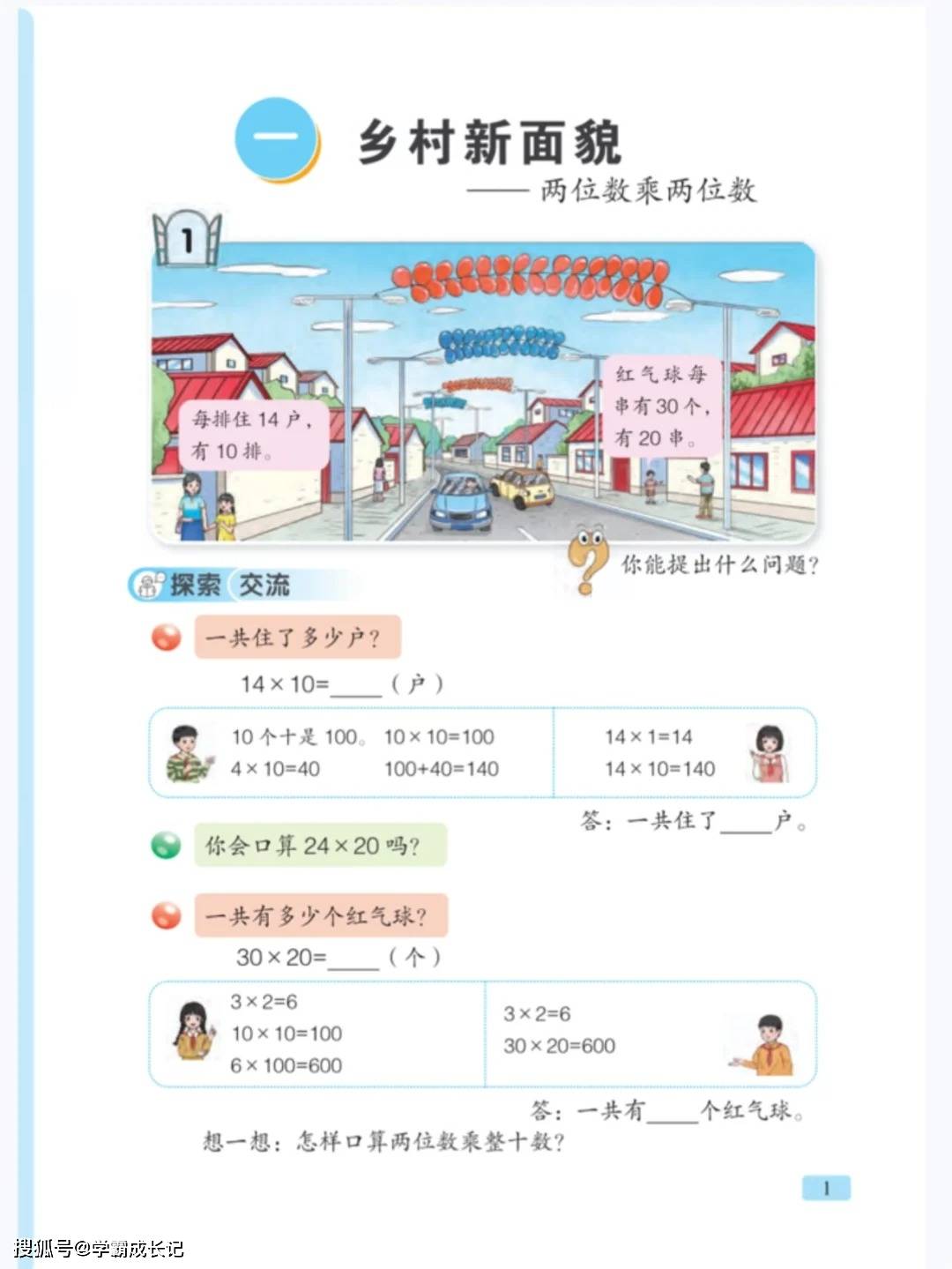全书以 7 个主题单元和 2 个主题活动串联起完整的知识体系,每个单元都以真实场景为切入点,引导学生在探索中构建数学思维。开篇《乡村新面貌》聚焦 “两位数乘两位数”,通过计算乡村住户数量、气球总数等问题,让孩子在口算、笔算的实践中掌握乘法运算技巧;《繁忙的工地》则以建筑工地为背景,讲解 “线与角” 的知识,从射灯的射线到塔吊的线段,让抽象的几何概念变得直观可感。