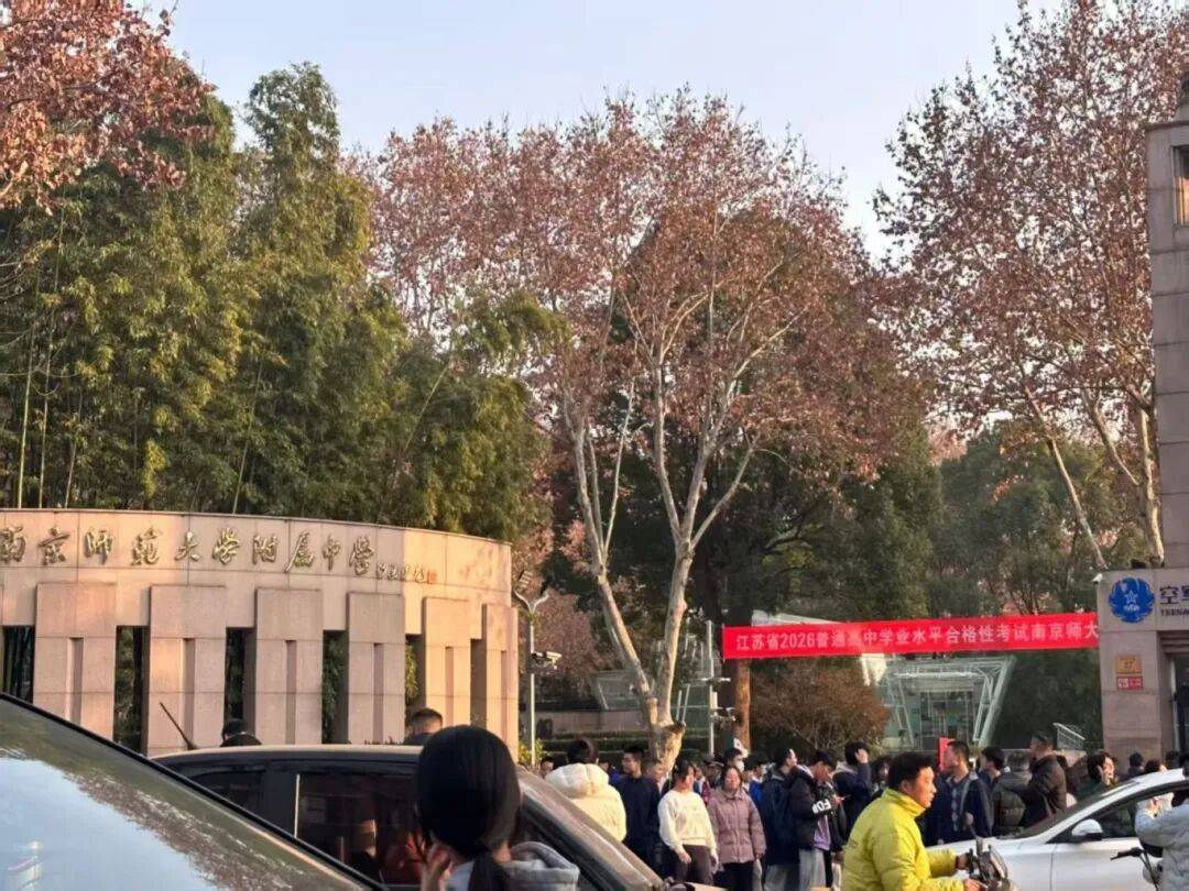 1月17日,江苏省2026年普通高中学业水平合格性考试(笔试)开考。早上7点半左右,南师附中、金陵中学、二十九中、宁海中学、雨花台高中、二十七高中等考点门口人头攒动,聚满了考生、家长和送考的老师,考生开始陆续进场。