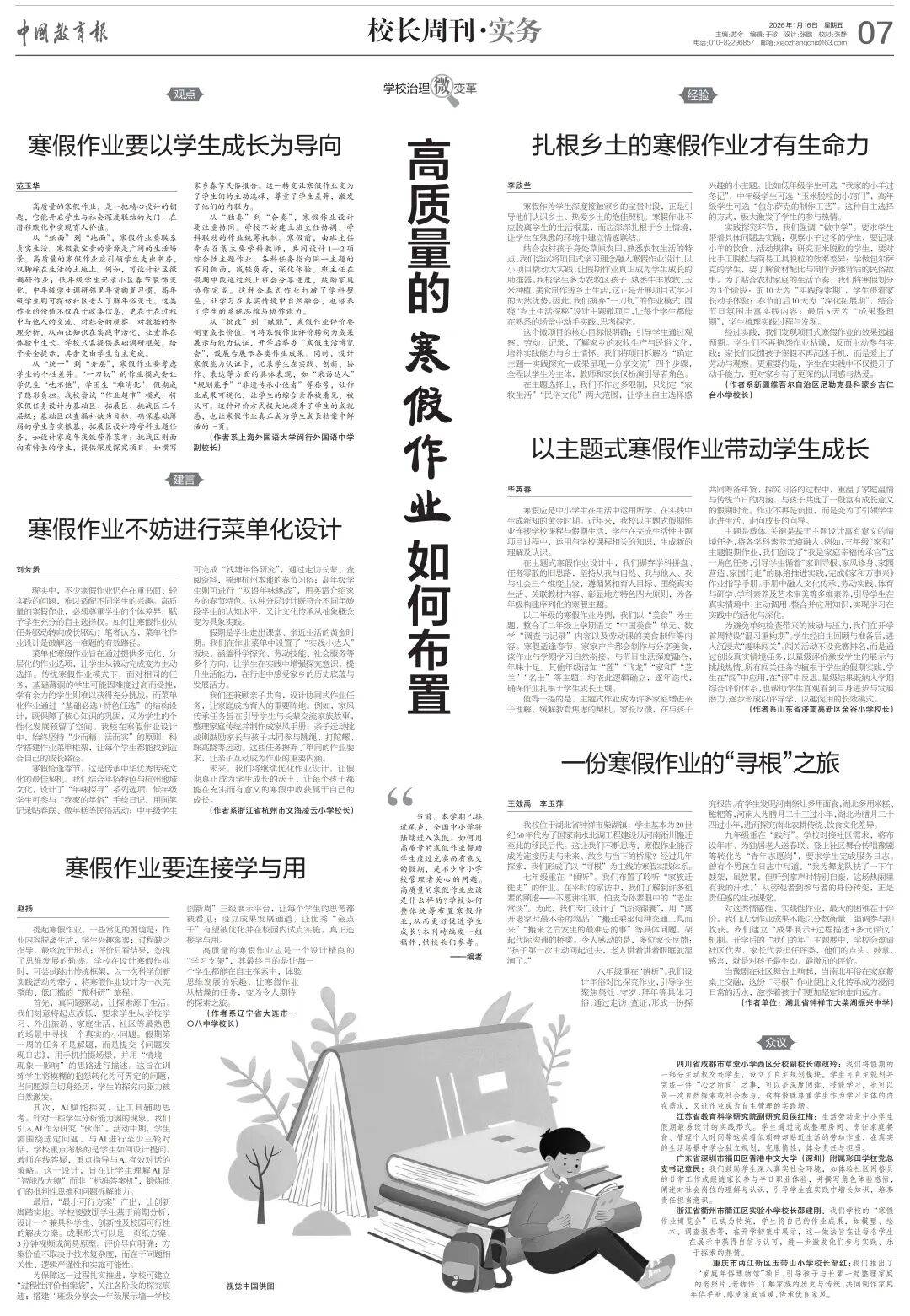 本学期已接近尾声,全国中小学将陆续进入寒假。如何用高质量的寒假作业帮助学生度过充实而有意义的假期,是不少校长、老师关心的问题。