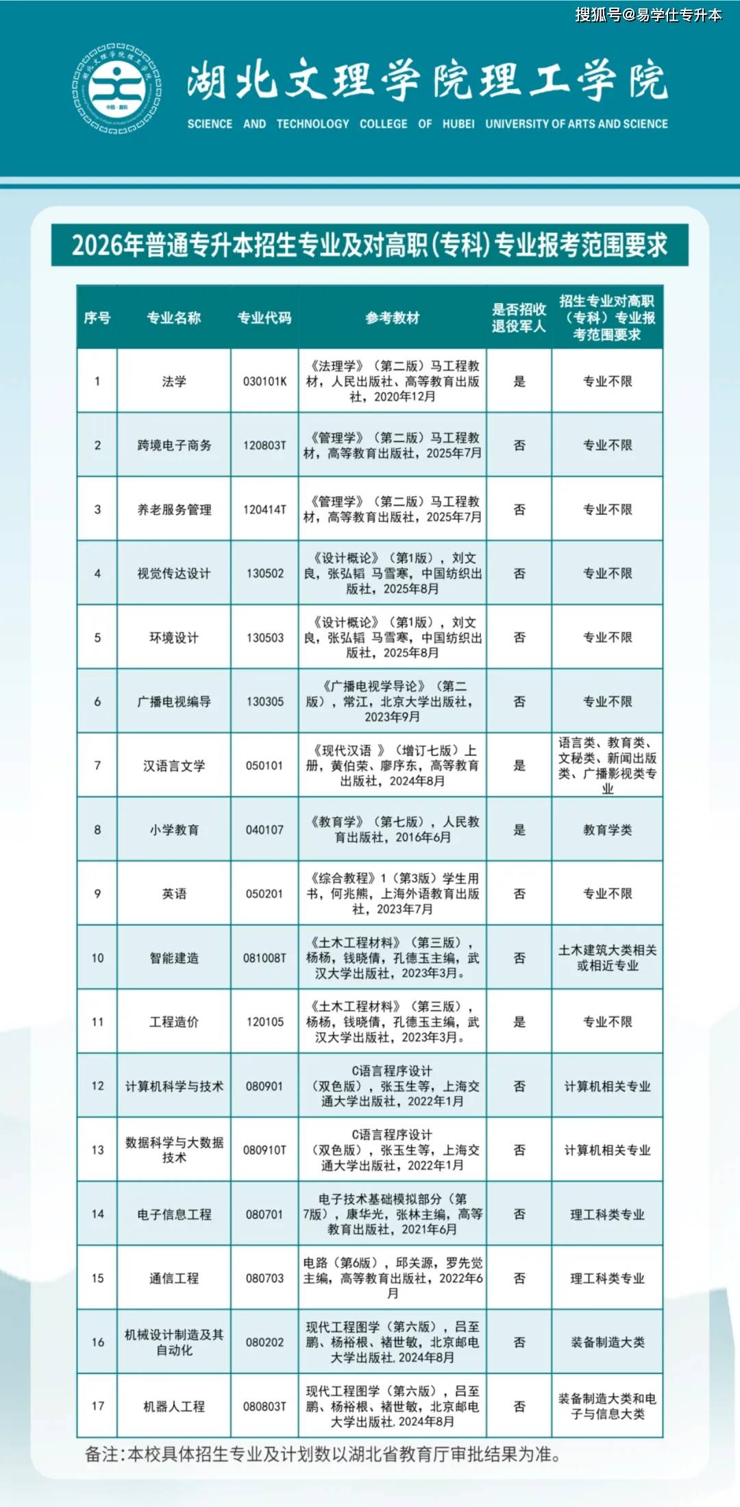 首所院校公布!2026年湖北专升本拟招生专业+考试大纲!