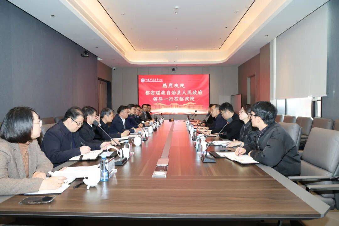 都安县党委常委、副县长(挂职)栾利建,都安县教育局、投资促进局、政府办公室,学校党政办公室、党委组织部、教务处、科学技术研究院、对外联络与合作处、总务处、化学与环境工程学院等单位相关负责人参加座谈。