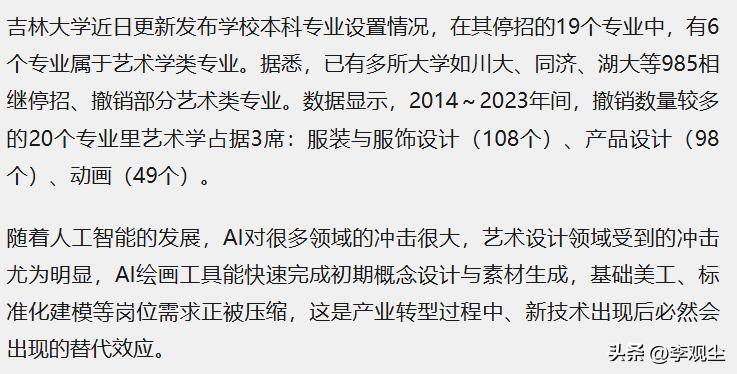 这波专业裁撤,真的只是高校的短期资源腾挪吗?被AI冲击的艺术类专业,难道只能在时代浪潮中逐渐退场,再无立足之地?