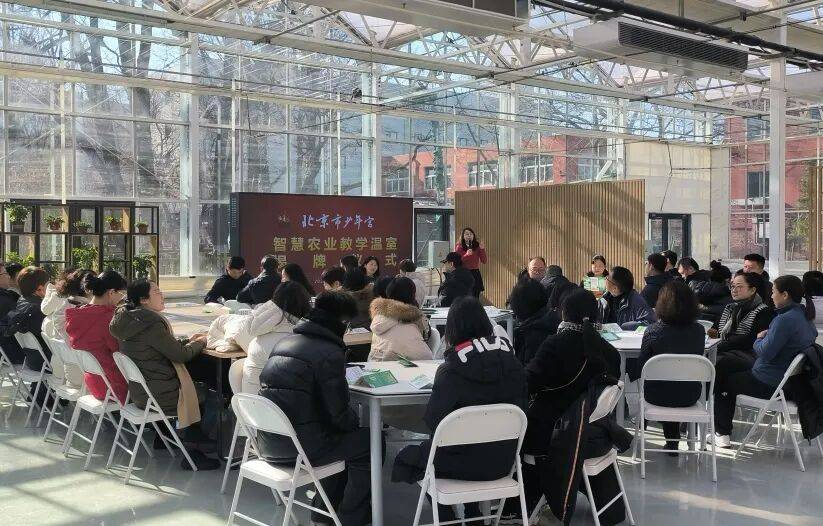 1月16日上午,智慧农业教学温室揭牌仪式隆重举行。北京市少年宫领导班子成员、全体中层干部及教师代表40余人齐聚现场,共同见证这一劳动教育新场域开启的重要时刻。