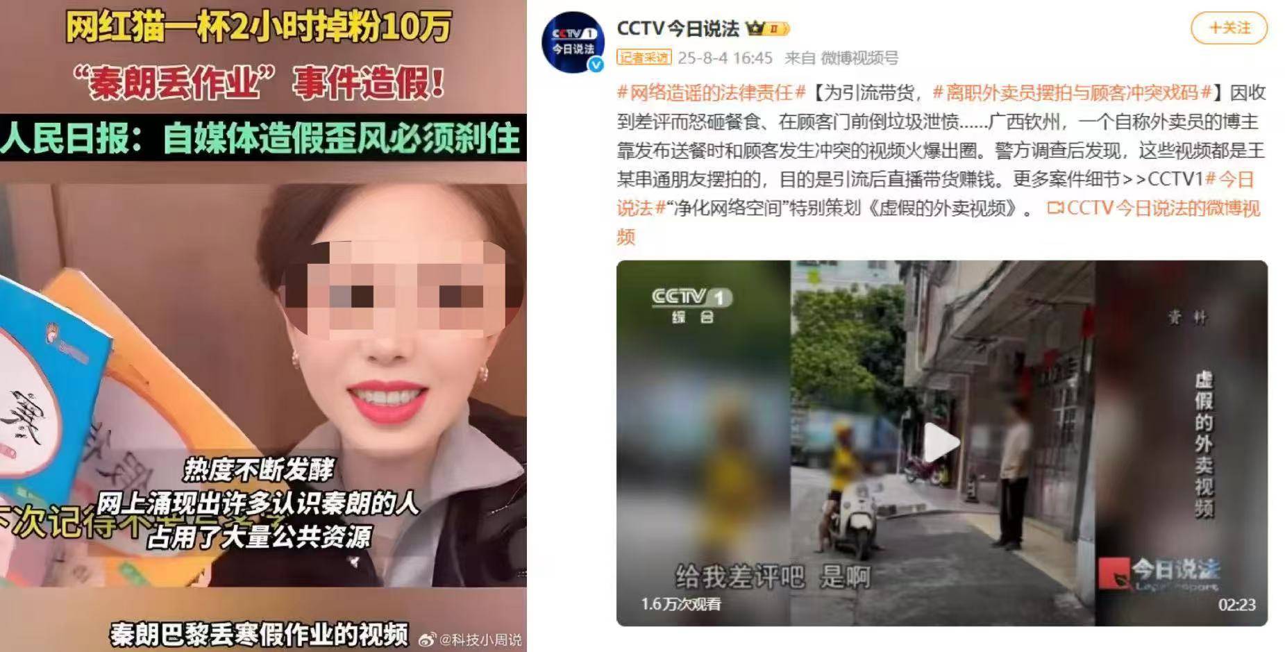 这些案例都是用编造的剧本骗取关注;但最后的结果也很相似,等到真相败露,便迅速遭到反噬和处罚。