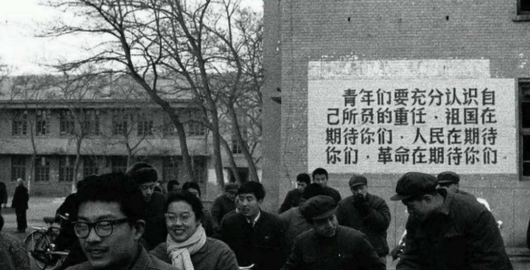 到了1978年春天, 北京大学的校园里弥漫着一股欢欣的气息。 这座百年名校终于迎来了恢复高考后的第一批新生,历史的车轮再次转动,迎接着充满希望的年轻人们。 在北大正门的上空,一条巨大的红色横幅迎风飘扬,写着迎新站三个字。