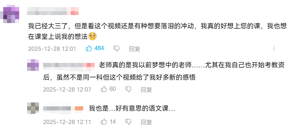 有网友十分羡慕,遗憾自己没能上过这样一堂语文课;有网友在弹幕里写下自己的答案。