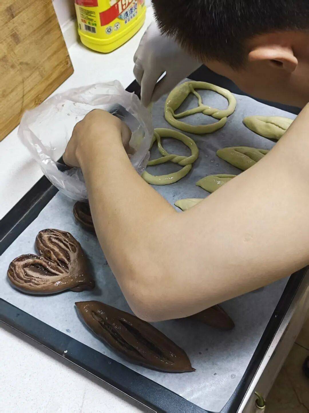 西班牙餐厅学完面包,在家中练习做碱水面包。(图/阿潘供图)