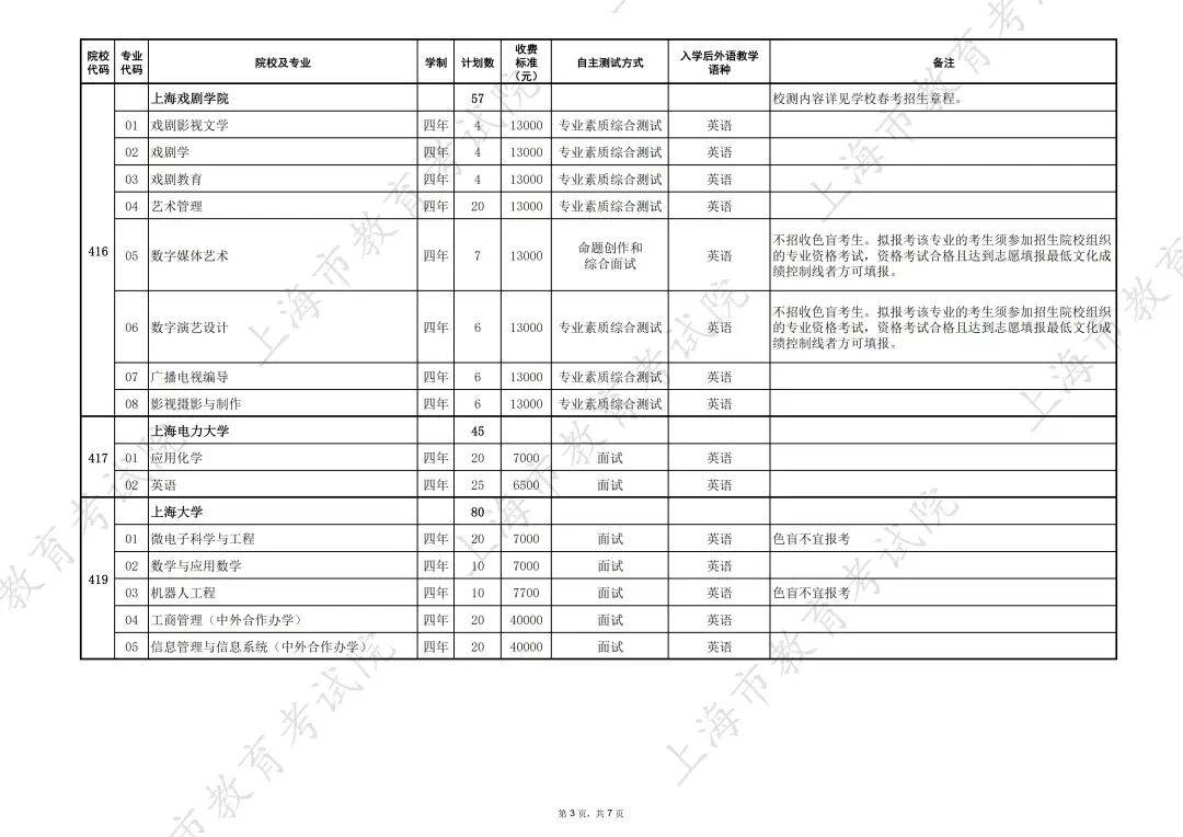 2026年春季招生中,部分院校新增了招生专业,比如上海大学的“数学与应用数学”“机器人工程”专业;上海应用技术大学的“园艺”专业;上海工程技术大学的“交通运输”专业;上海电机学院的“电气工程及其自动化”专业;上海戏剧学院的“戏剧学”“戏剧教育”“数字演艺设计”“广播电视编导”“影视摄影与制作”专业;上海杉达学院的“土木工程”专业;上海外国语大学贤达经济人文学院的“阿拉伯语”“艺术教育”“新闻学(双语班)”“商务英语”“国际经济与贸易(全英语教学班)”专业;上海师范大学天华学院的“应用心理学(中外合作办学)”专业;上海立达学院的“应用心理学”“广播电视编导”专业,以及上海中侨职业技术大学的“工程造价”“人工智能工程技术”“食品营养与健康(中外合作办学)”专业等。