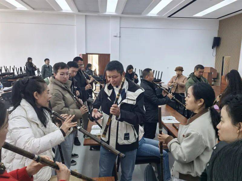 此次培训以“零基础普及与技能提升并重”为目标,创新采用“线下集中教学+线上跟踪辅导”融合模式。在为期8周,每周2课时的系统课程中,吸引了70余名职工积极参与。教学内容从持箫姿势、指法规范、气息调控,到音阶练习与经典曲目演绎,逐步引导学员走进洞箫的艺术世界。教师耐心示范、细致答疑,学员专注投入、互帮互学,为确保学习实效,培训建立了“练习-反馈-答疑”培训机制。学员每周上传练习视频,教师逐一给予个性化点评。同时,借助线上平台,教师针对学员共性难点进行集中讲解,使指导贯穿学习全程,有效助力学员稳步提升。