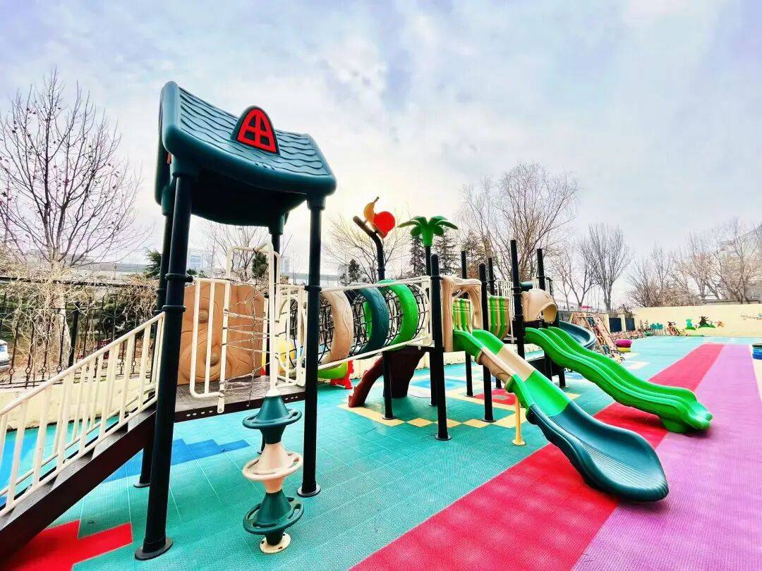 户外操场是孩子们释放活力的乐园。多彩防滑的悬浮地板,安全有趣的游乐设施,让孩子们在亲近自然的同时,锻炼强健的体魄。