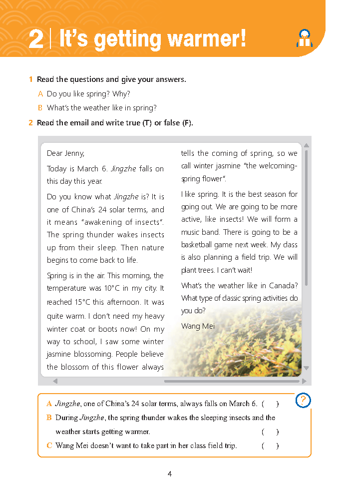 2026春冀教版八年级英语下册以《义务教育课程方案和课程标准(2022年版)》为依据,紧扣“人与自然、人与社会、人与自我”核心主题,构建了“体验探索—发现建构—拓展理解”的进阶式学习体系,是八年级学生衔接初中基础与高中深度学习的关键教材。教材共包含8个主题单元,覆盖春日活动、安全防护、体育精神、公共规则、发明创造、文学赏析、金钱价值、自然灾害等多元维度,既贴近学生日常认知,又融入时文热点与文化元素,如开篇Unit 1“Spring is coming!”结合植树、惊蛰节气渗透24节气文化,Unit 5“Great inventions”介绍中国古代发明强化文化自信,Unit 2“Safety”“Unit 8 Natural disasters”聚焦实用生存技能,兼具知识性与实用性。在能力培养上,教材采用“Listening and speaking→Reading and thinking→Reading and grammar→Reading and writing→Project time”的模块设计,循序渐进提升听说读写全技能,同时将过去进行时、被动语态、宾语从句、定语从句等初中核心语法融入主题语境,摆脱孤立记背,实现“学用结合”;新增的项目实践任务(如制作安全海报、设计班级奥运会方案)与文化拓展板块,更助力学生培养团队协作、批判性思维与跨文化理解能力,落实语言工具性与人文性的统一。