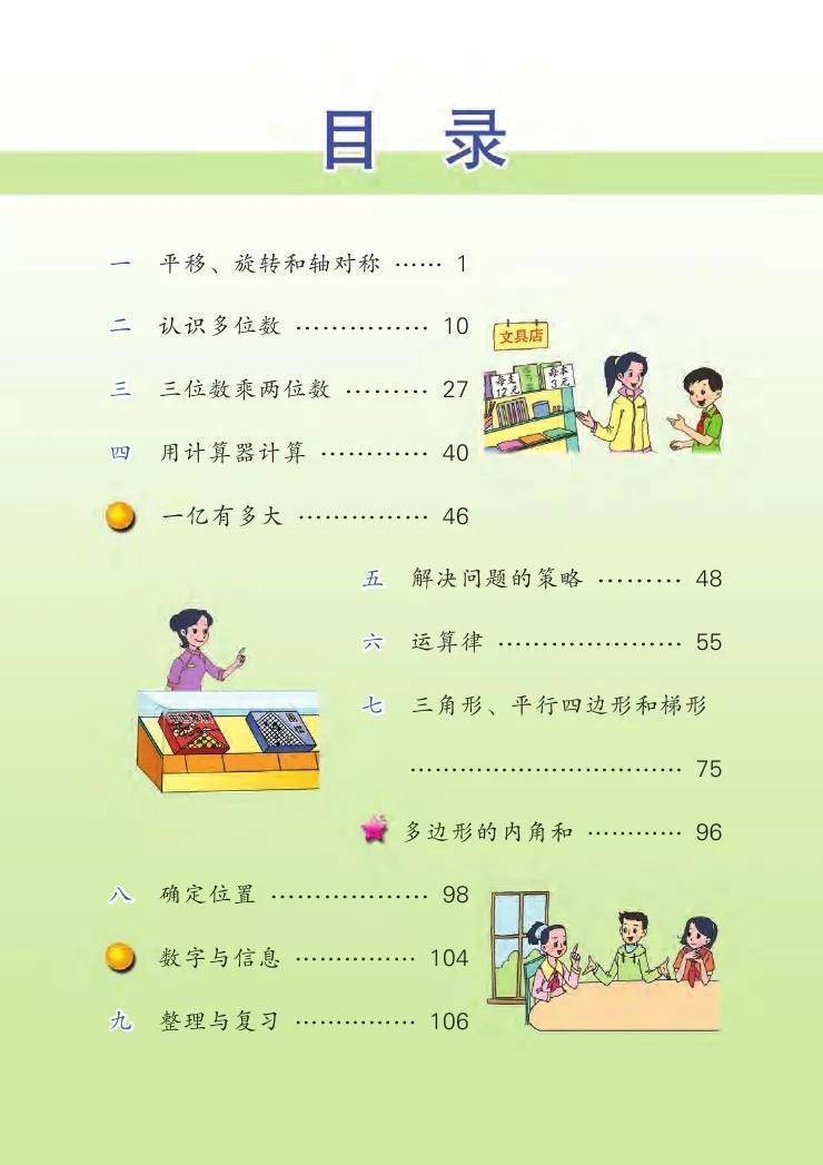 苏教版四年级数学下册电子课本图片版在线阅读