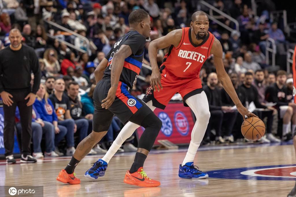 首节开打,比赛就呈现出一种老派的气象,双方都花了大量时间在防守端做文章。结果,杜兰特在严控之下,只在节初和节末各自命中一个运动战进球。幸好,火箭自己的防守也相当在线,单节队员们通力配合只让活塞队得到了20分。