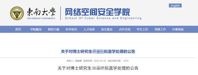 近年来,多所高校也逐步强化博士生管理。比如2025年3月,东南大学一名博士生因“考核警告后仍不合格”被拟退学。