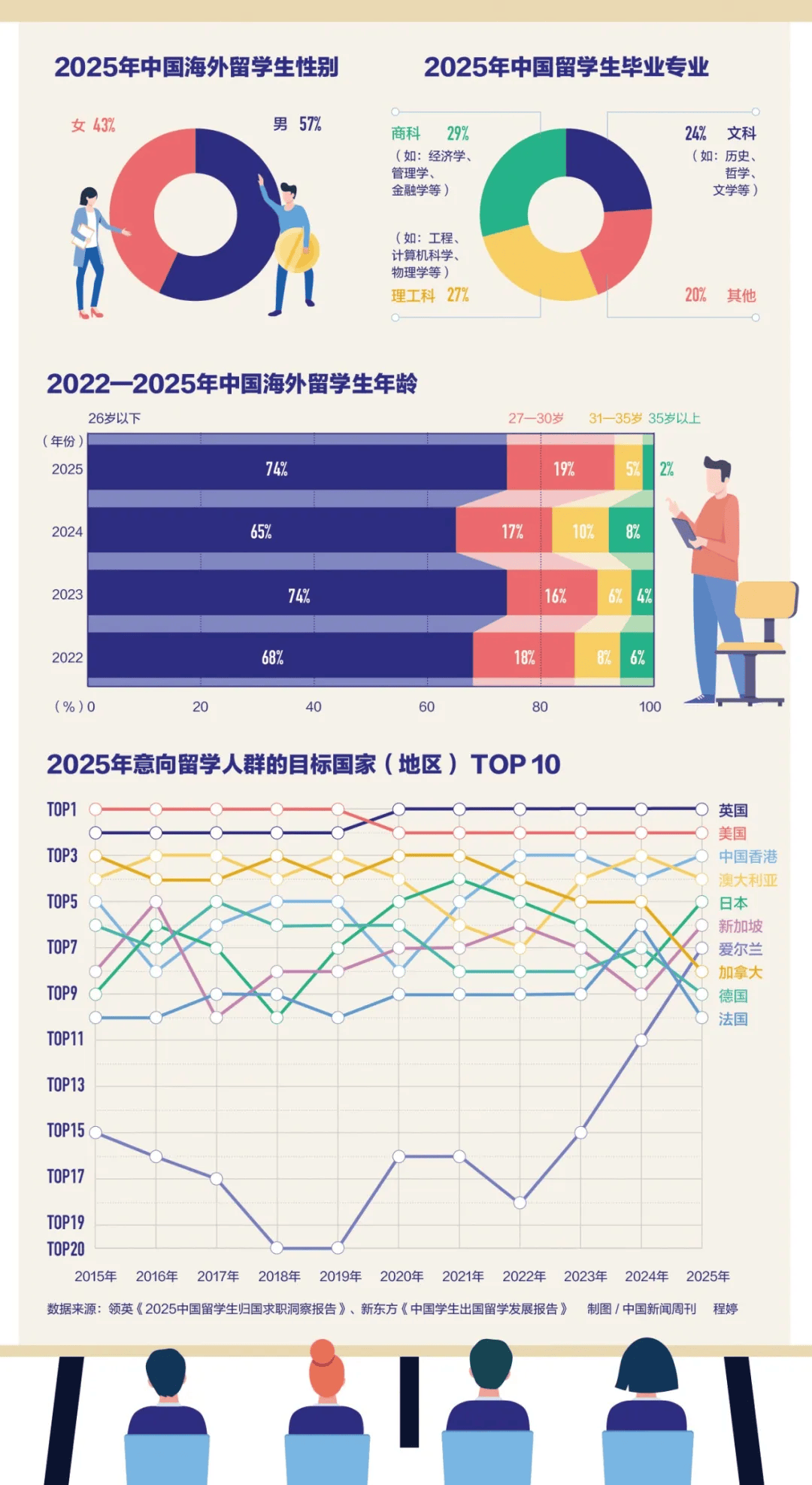 编者按:当美国签证审查趋严、STEM专业限制加码,曾是留学首选的北美赛道正经历显著变局 ——2025年在美中国留学生人数同比下降4.1%,而全球留学市场却呈现出“传统中心+新兴区域”的双轨扩张新态势。从欧洲的高性价比工科教育、亚洲英语系地区的地缘优势,到中东的就业红利与“一带一路”沿线的合作机遇,中国留学生的选择不再局限于英美澳等传统目的地。这场留学版图的重构背后,是政策变动、性价比考量、职业规划与文化探索的多重博弈。本文将聚焦留学变局下的目的地迁移、专业选择与价值重构,看新一代留学生如何在多元选项中寻找适配自身的“下一站”。