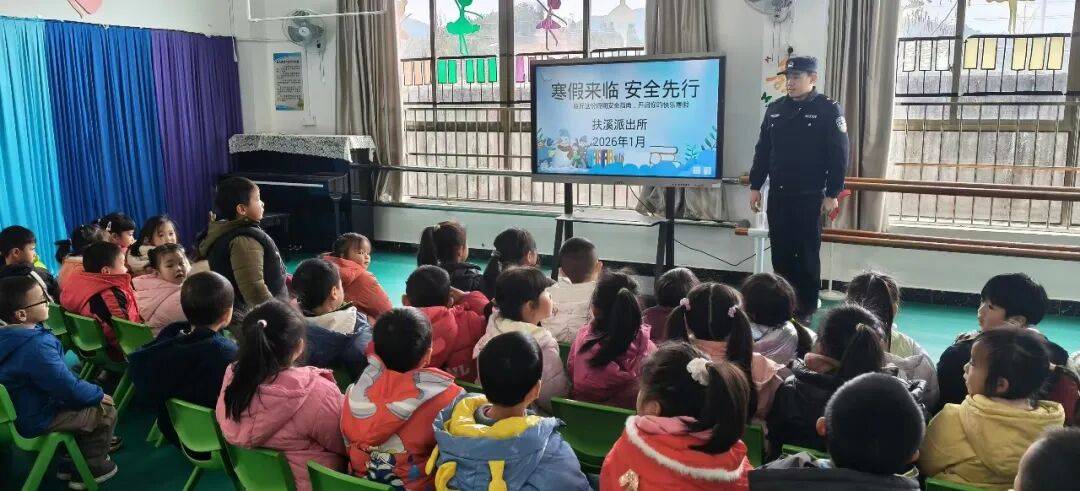 寒假将至,为提升幼儿假期安全意识,守护幼儿平安健康成长。1月23日上午,扶溪镇中心幼儿园联合扶溪派出所,开展寒假安全教育宣传活动。