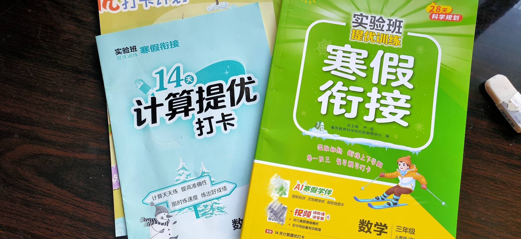作为刚陪孩子熬过三年级上学期的家长,我太懂这个阶段的学习痛点了:孩子知识点掌握得半吊子,经常 “似懂非懂”;上学期的重点题型没吃透,下学期又要面对新难点,很容易越学越吃力。所以这个寒假,我没给孩子报五花八门的辅导班,也没买堆积如山的练习题,而是挑了一套《实验班提优训练・寒假衔接》,数学这套里包含《寒假衔接》、《计算提优打卡》、28天提优打卡计划表。