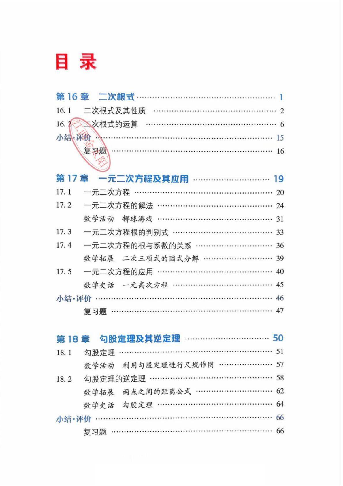 沪科版八年级数学下册电子课本图片版在线阅读