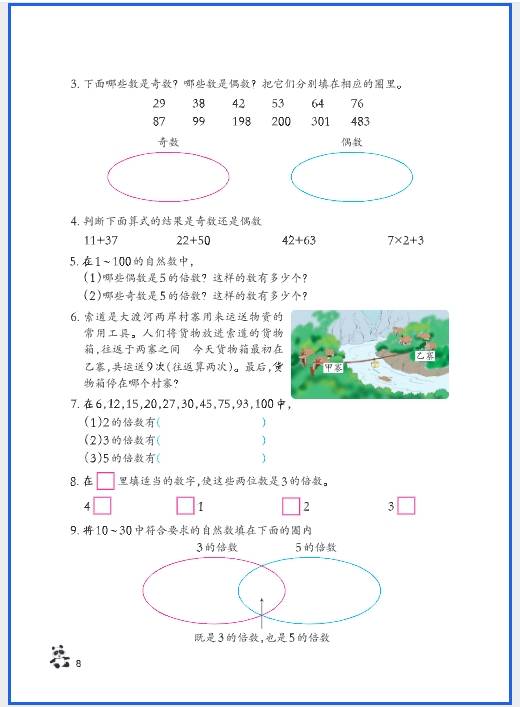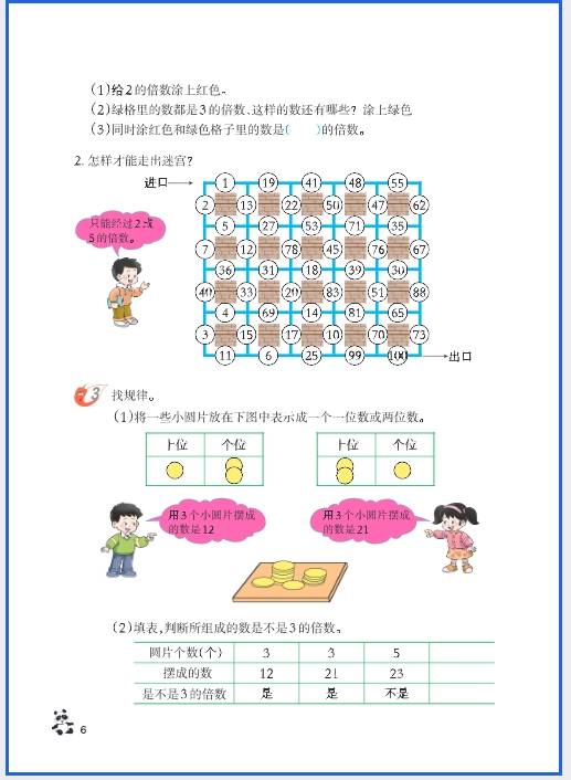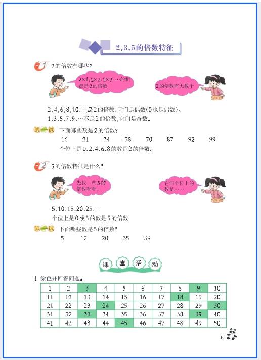 - 2/3/5 的倍数特征、质数与合数、最大公因数与最小公倍数;
