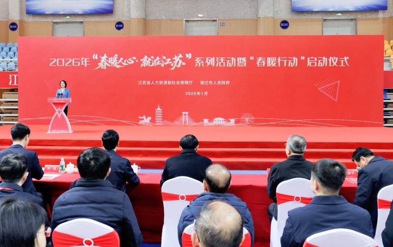 稳就业就是稳民心、稳大局、稳发展。1月26日上午,暖民心、惠民生的2026年“春暖行动”启动仪式在宿迁市举行。这标志着“春暖人心·就在江苏”系列活动正式拉开帷幕。该活动旨在鼓励务工人员留岗过节、促进返乡人员就近就业,保障企业用工,致力将江苏打造为就业创业的理想之地。