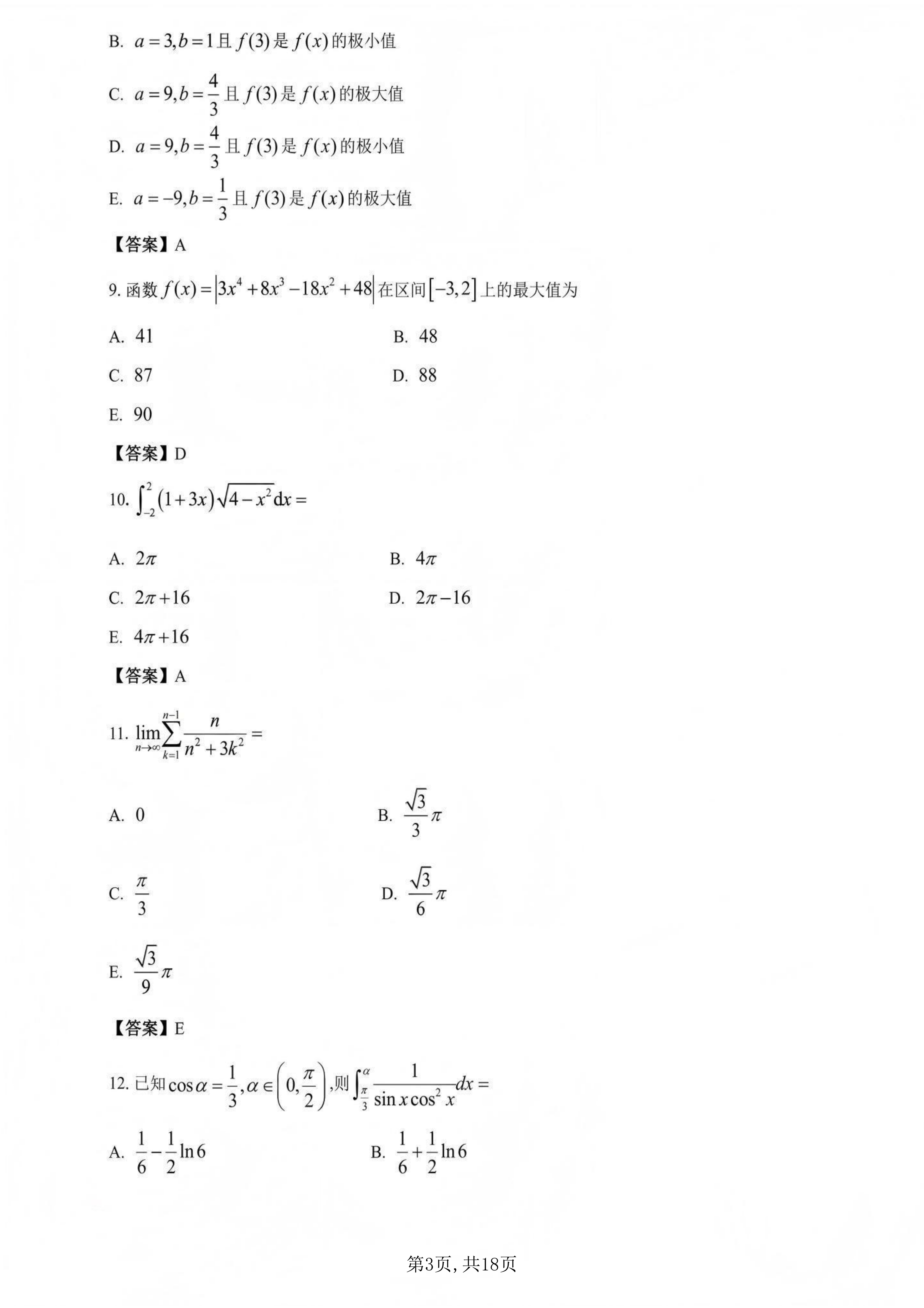 2、数学部分涵盖微积分、概率论和线性代数等核心内容。