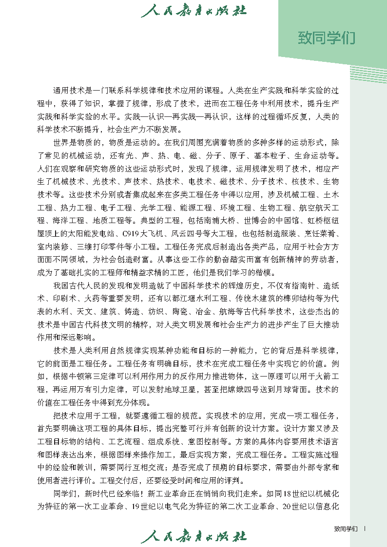 新人教版高中通用技术必修一二册电子课本在线阅读(此为截图版,获取是高清版)