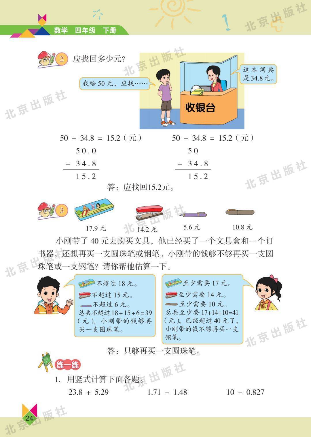 北京版四年级数学下册电子课本图片版在线阅读