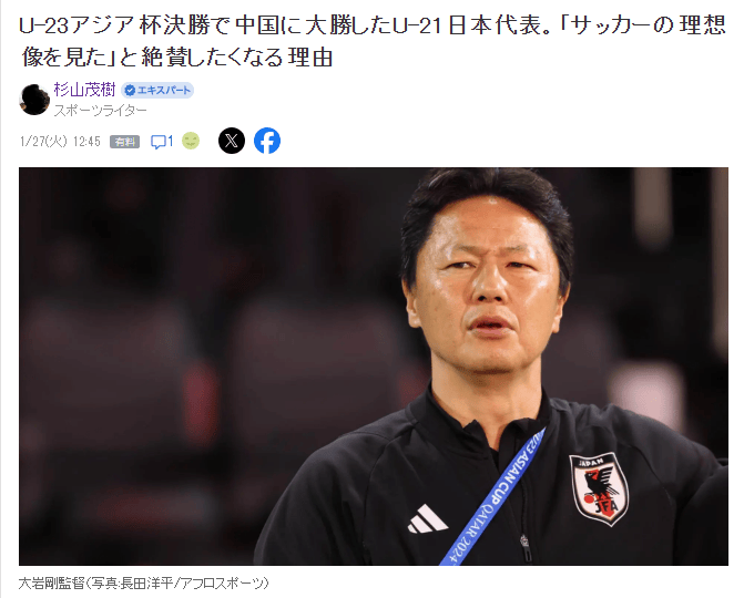 北京时间1月27日消息,在U23亚洲杯决赛4-0击败中国队夺冠后,日本资深足球记者杉山茂树发表专栏,对于中国队在决赛中的表现进行了点评。