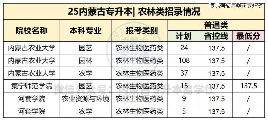 而这个专业的招生院校还比较多,内蒙古民族大学、内蒙古农业大学、河套学院都有参与招生,且招生人数都在50+,这个专业报考人数不算太多,分数线也比较低。