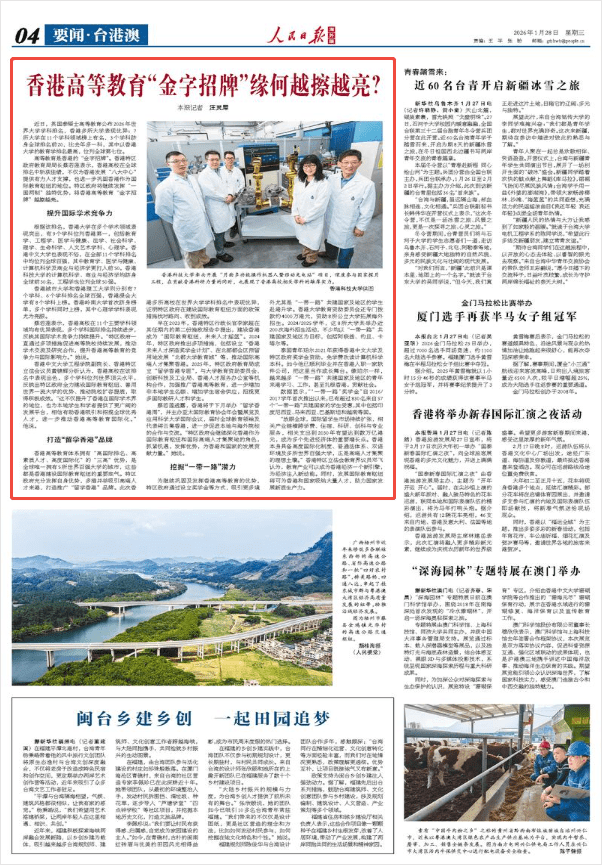 高等教育是香港的“金字招牌”。香港特区政府教育局局长蔡若莲表示,香港高校在全球排名中斩获佳绩,不仅为香港发展“八大中心”提供有力人才支撑,也进一步巩固香港作为国际教育枢纽的地位。特区政府将继续发挥“一国两制”独特优势,将香港高等教育“金字招牌”越擦越亮。