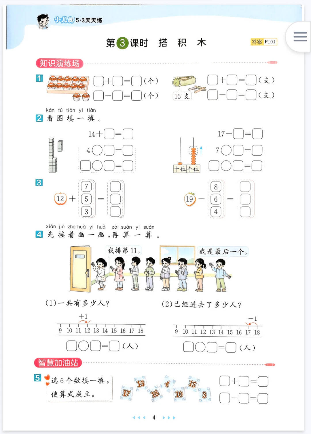 每一页都是 “基础→提升→拓展→检测” 的递进设计,刚好匹配一年级 “从感知到应用、从基础到综合” 的能力升级节奏,避免学习浮于表面。