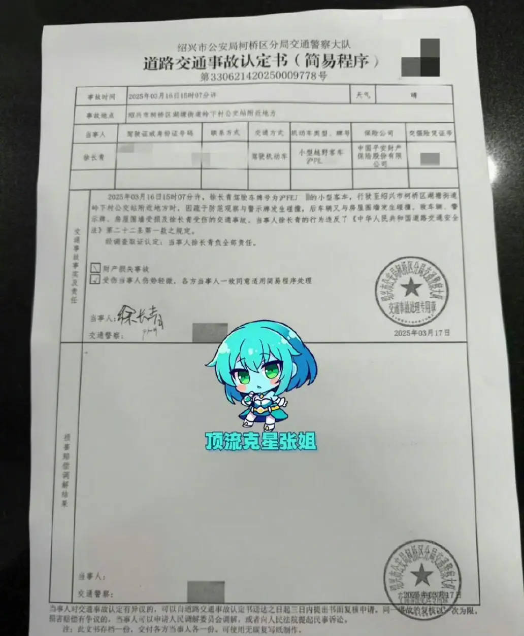 记者联系柯桥区交警,工作人员称,此事需联系柯南中队,“这起事故是柯南中队处理的。”工作人员说,此事已经反映过去了,“去年的事故查实没有那么快,详细情况等柯南中队核实好了,他们会回电话的。”截至发稿前记者未获回复。
