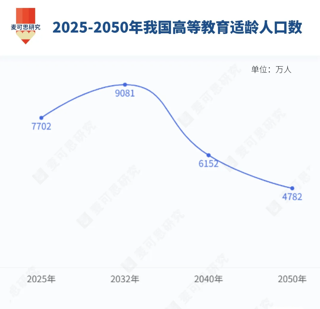 其相关研究的具体数据显示,2040年,适龄人口数预计为6152万人,较2025年(7702万人)减少1550万人,降幅达20.1%。至2050年,适龄人口数进一步减少至4782万人,较2025年减少2920万人,降幅扩大至37.9%。