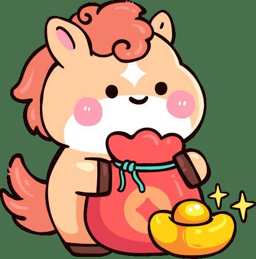 设计专属新年红包,画上小马、元宝、春联等图案,写上祝福语,寓意“红红火火,福气满满”。